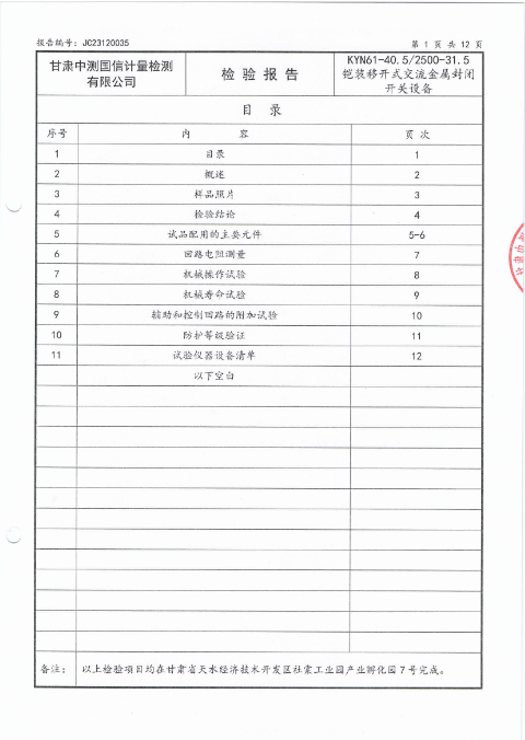 KYN61-40.5/2500-31.5 3C檢驗(yàn)報(bào)告